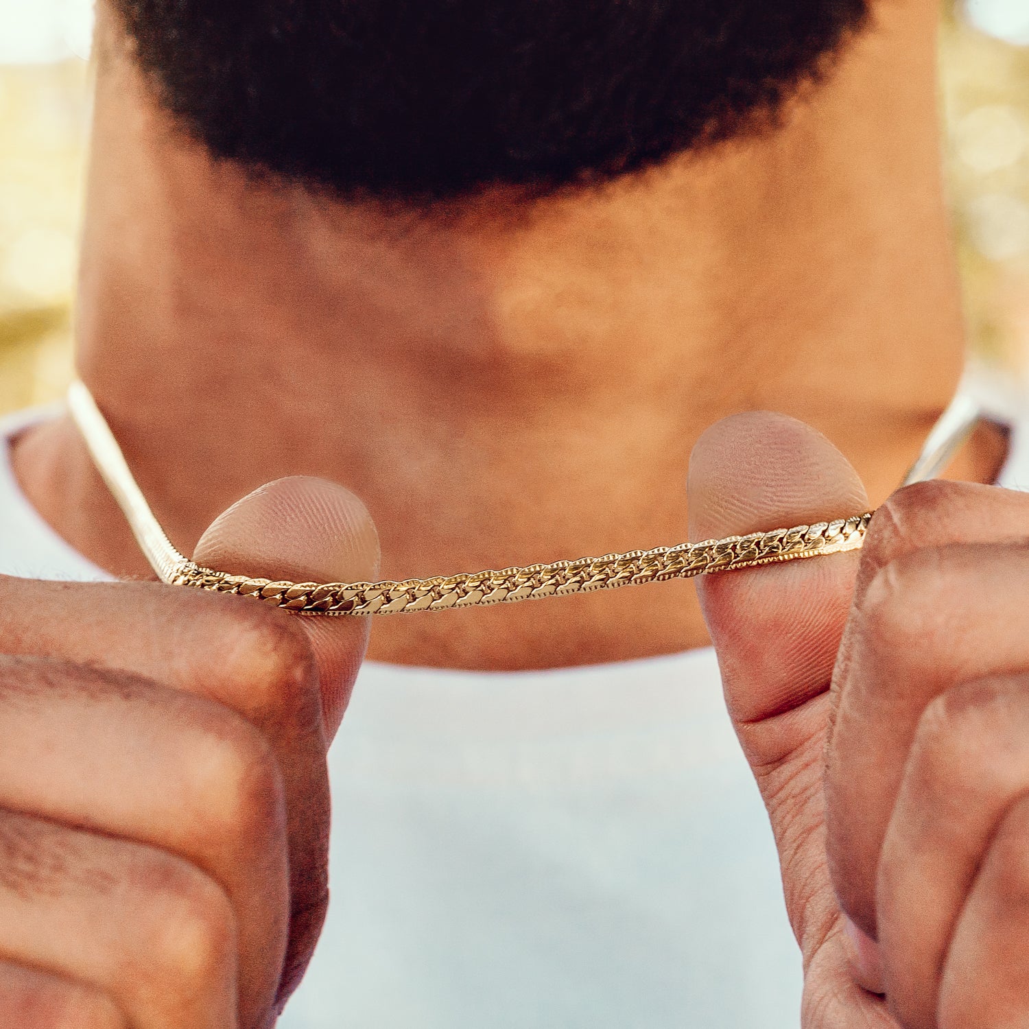 - Oro laminado italiano 18K con tono oro auténtico y acabado espejo.
