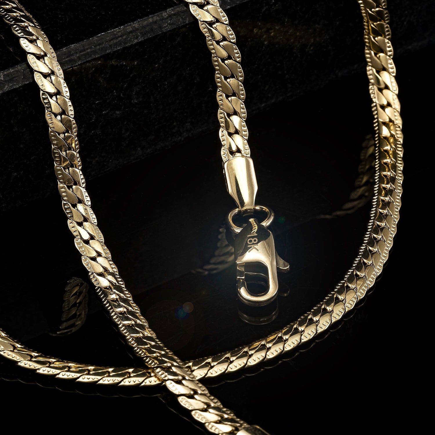 - Cierres tipo langosta, contramarcados con el sello 18K.